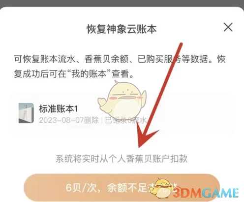 3、依照提示进行操作恢复,就能实现对随手记误删账本的恢复。