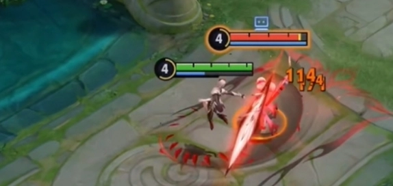 3、当血量降至半血以下时,立即开启大招,使自身进入不屈状态,随后迅速使用二技能对敌人进行快速收割。