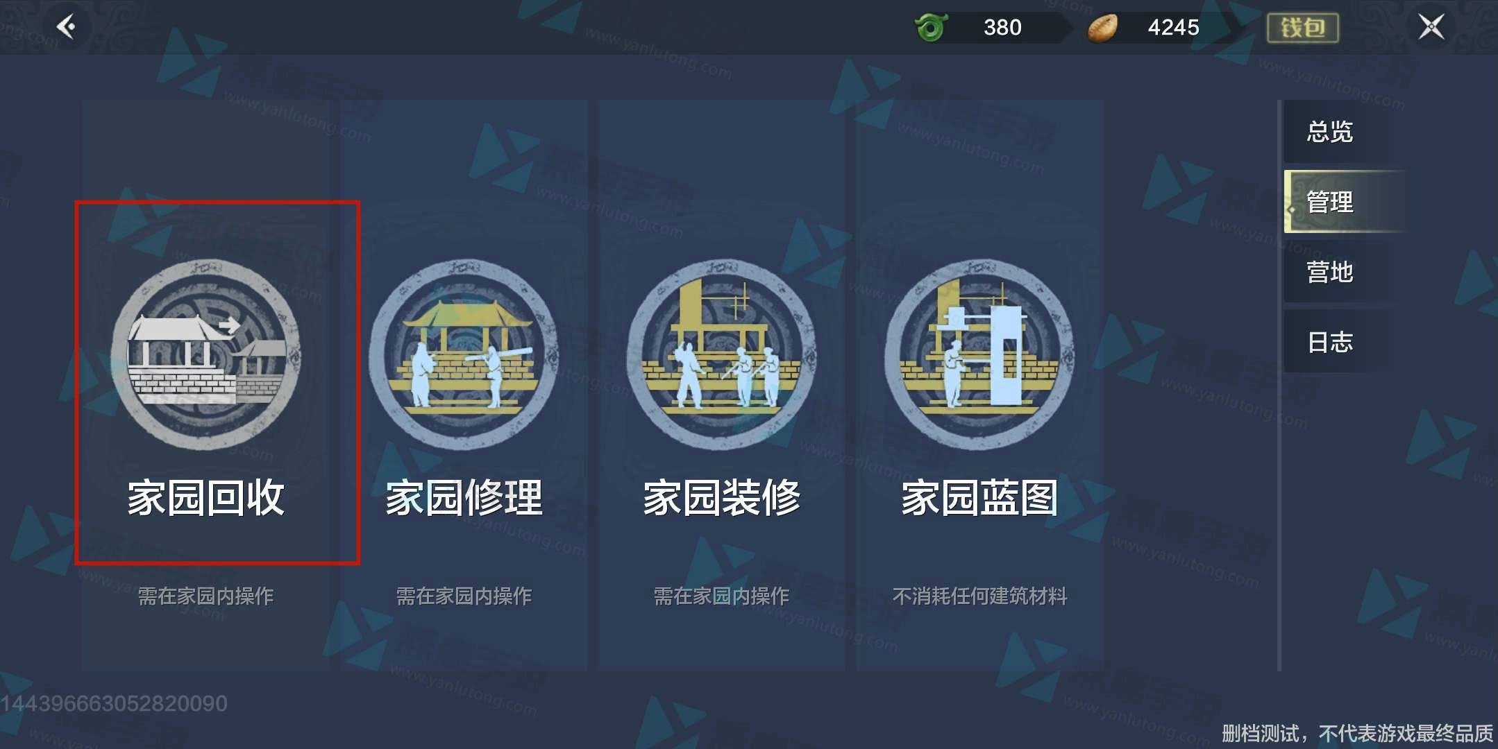2. 当进入家园页面时,先点击“管理”,接着再点击“家园回收”。