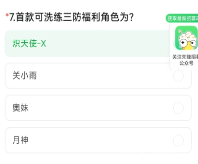 7、首款可洗练三防福利角色为?