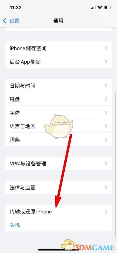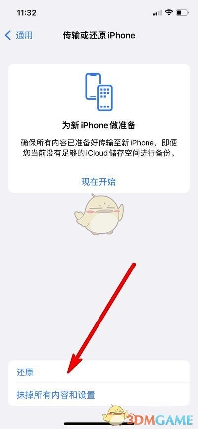 2. 点击“传输或还原iPhone”。
