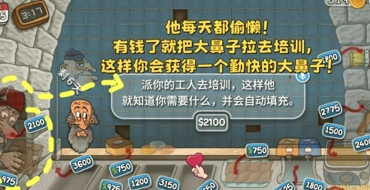 3、员工培训:花费200元对大鼻子进行培训,能提高其工作效率,进而获取更多金币。