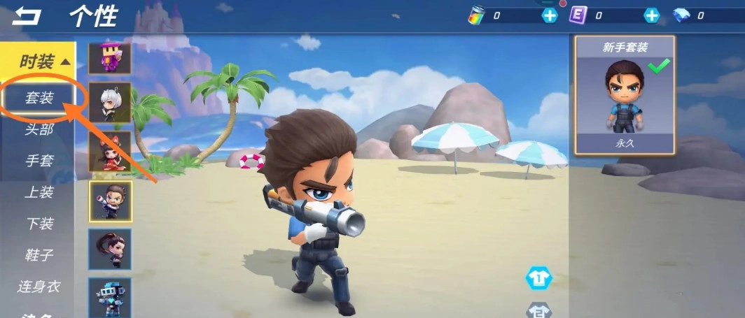 2. 来到服装页面,点击左侧的“套装”按钮,具体位置如图所示。