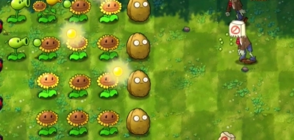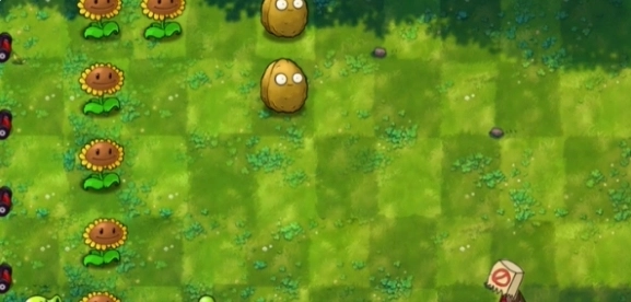 2、首先在左侧栽种一列向日葵,于右侧种植两颗坚果。