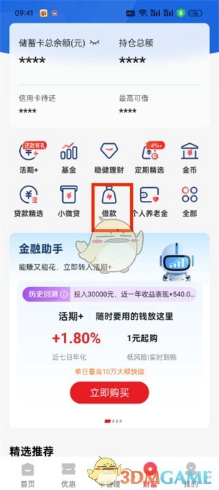 2、接下来,在财富页面里,能够瞧见小微贷、借款、个人养老金等功能选项,此时我们点击【借款】。