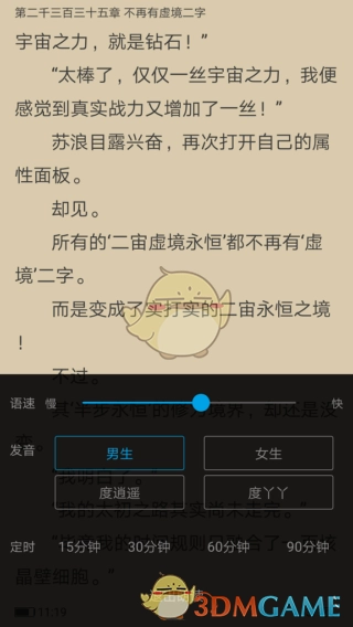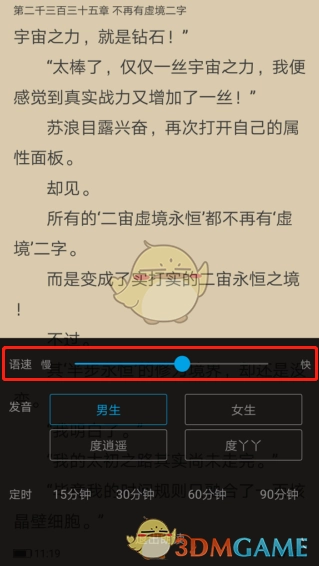 5、当听书插件下载完毕,系统便会自动进入朗读模式。要是觉得朗读速度过慢,再次点击手机屏幕中心即可。