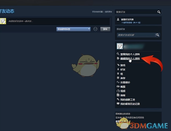 1. 于Steam里把您账号的部分隐私设置为可见,接着点击Steam主页上的个人ID,随后选择个人动态以查看详细资料。
