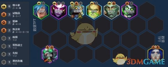 先把努努升到三星,之后再考虑提升人口数量。要是没拿到慢炖,老鼠的终结者和6斗士阵容搭配起来也相当强势!到达八级后,可以考虑换下三个试验品,优先凑齐6格斗阵容。要是有转职道具,在八级时就能开出完美配置。