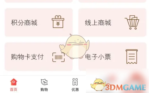 2、进入“我的”界面,便能看到自身基本信息、购物卡余额、积分等内容,点击如下图所示的红包。