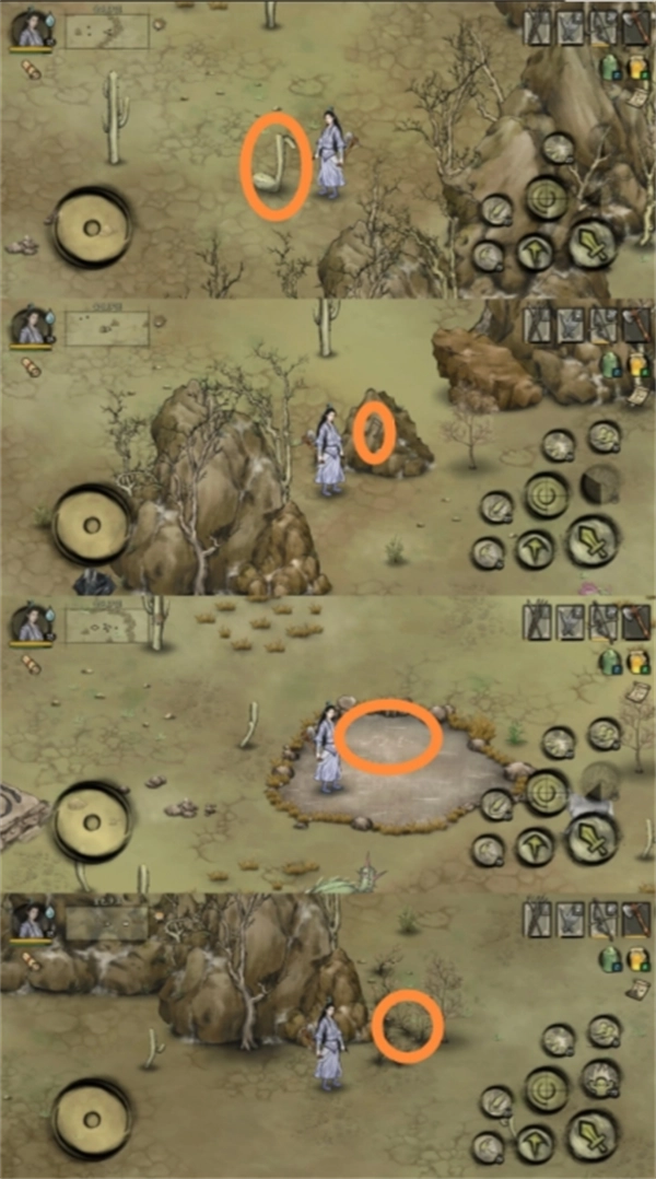 分别是音符形状的仙人掌、石头上的音符印记、水潭里的音符波纹,还有花丛中的音符(靠近并点击音符所在位置就能收集)