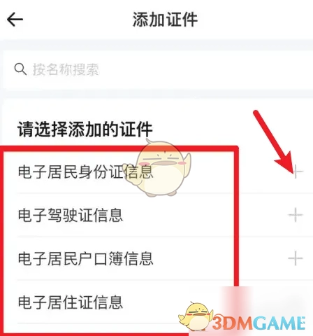3、最后挑选证件类型,点击右侧的“+”号完成添加操作即可。