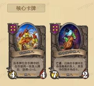 1、手牌鱼玩法,即我们要持续打出鱼人牌,让裁脍鱼人不断成长壮大。