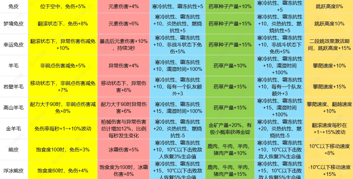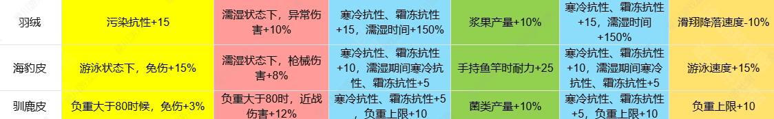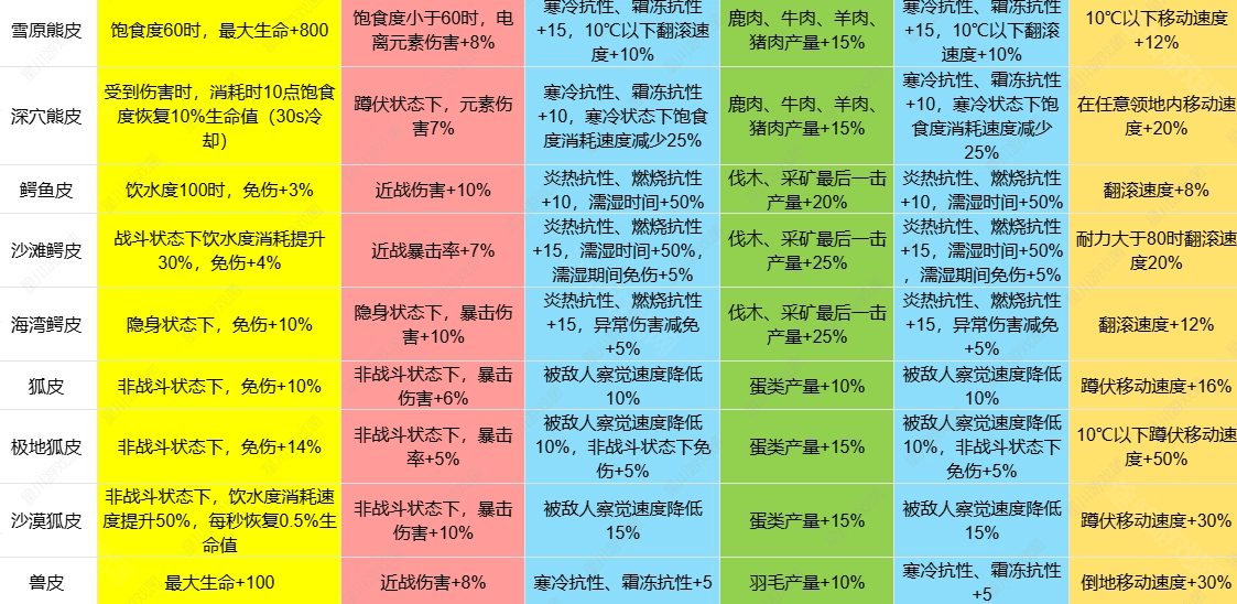 2、例如,海豹皮具备低温抗性,鳄鱼皮拥有高温抗性,这两种皮能够助力角色适应极寒或极热的环境。