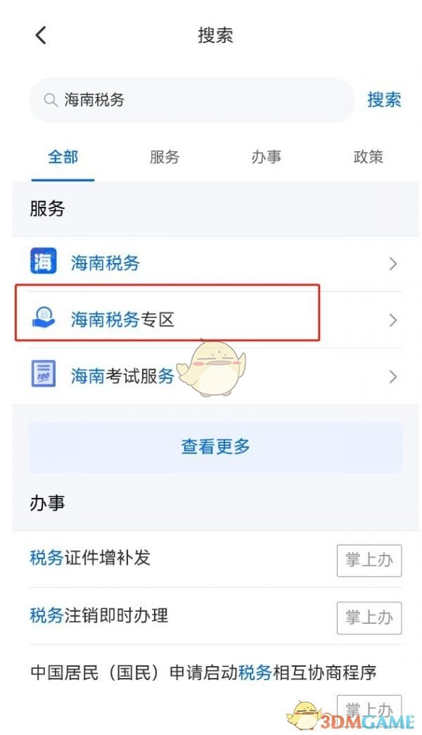 1. 先下载并打开“海易办”APP,进入首页后,在搜索栏直接搜索“海南税务”。