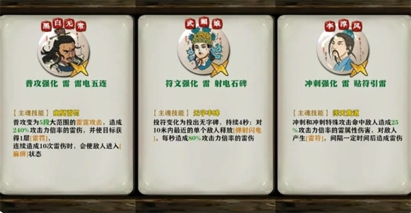 一共有雷、火、木、风、水这五种属性,每一种属性都对应着三种魂灵,总计十五种魂灵。