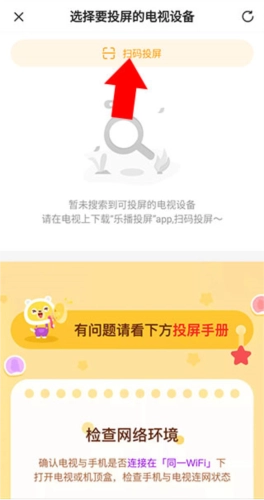 3、进入下方界面后,点击【扫码投屏】,同时在电视上打开乐播投屏,扫描二维码就能成功投屏。