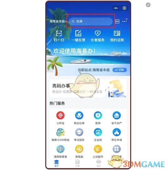 1. 开启海易办,点击上方搜索栏。