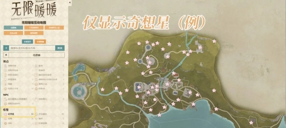 左键单击任意一个按钮,只要该按钮属于包含“地点”“NPC”“收集”的一级分类,就能开启或关闭对应的全部点位。
