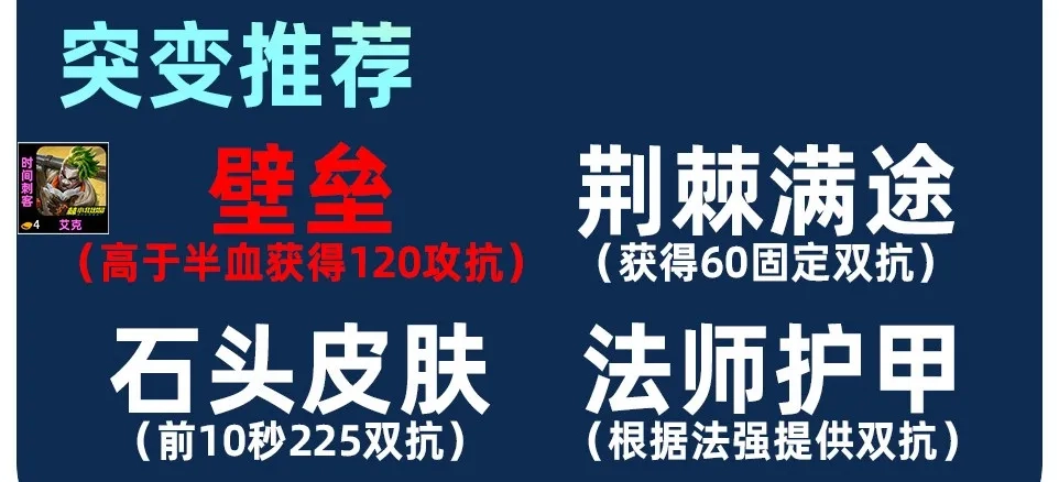 最佳搭配是最优壁垒与艾克的双吸血,这样能稳稳获取120点双抗。无论经济状况是拮据还是优渥,倘若在5 - 1阶段能直接升到9级,那就选取备选的异变(巨人形体、法师护甲、深入敌阵、荆棘满途、石头皮肤)。比如选石头皮肤的话,前排只需放置盖伦和艾克,专门承受敌方C位的伤害;要是选法师护甲,就可以出帽子和大天使。