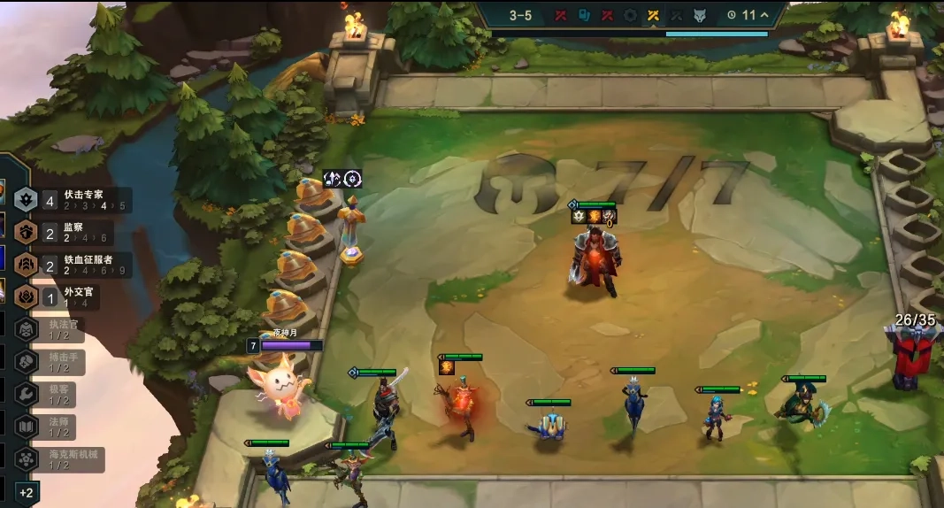 根据经济情况,3-5或者3-7拉7,继续补充羁绊不D牌