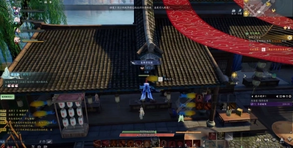 1. 飞到挂着红布条的屋顶,屋顶上有一盏鲤鱼灯,点击它,会发现它是灵体变化而成的。