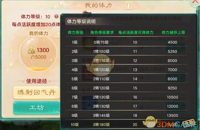体力是进行制造所必需消耗的资源,可通过提升活跃度来获取,或者在摆摊处购买回气丹以补充体力;同时,也能够利用体力炼制回气丹,再将其通过摆摊的方式售卖出去。
