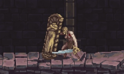 手持盾牌的小兵,对正面攻击伤害具备完全免疫能力,并且闪避动作无法穿透盾牌。其打法与轮子怪相同,在他发动攻击时,按下格挡键进行弹反操作,如此重复两遍就能将其击杀。