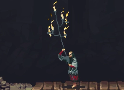 这个蜡烛怪差不多就是雕像姐姐的突刺版本。打法跟雕像姐姐一样,先引它突刺,当它横着举起烛台时,我们闪避到它身后攻击三下,等它再次准备攻击时,又进行闪避,这样重复两遍。另外,也能用弹反打法,弹反两次就能将其击败。