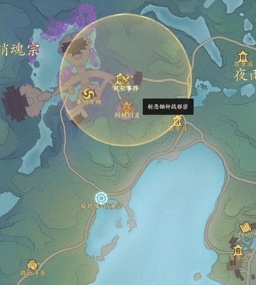 此事件是斩恶锄奸战邪宗的后续,在原地等候事件刷新,开启地图查看具体位置,然后击败怪物。
