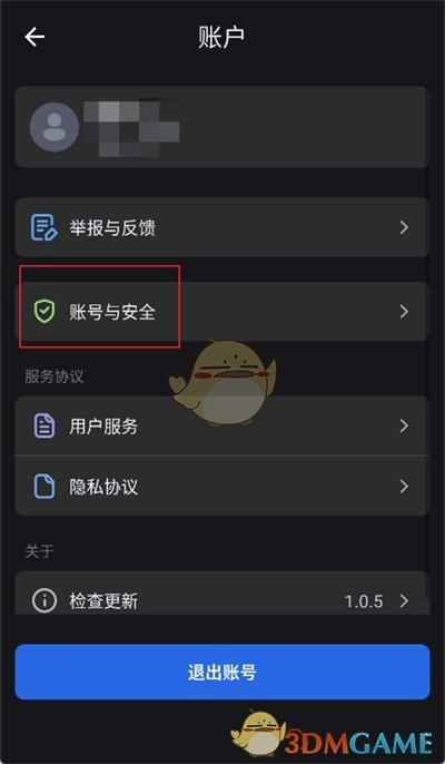 3、点击之后,会进入账户界面,在此界面中找到【账号与安全】选项,然后点击该选项。