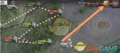 3、进入调查任务后,点击右上角的宝箱以完成领取操作。