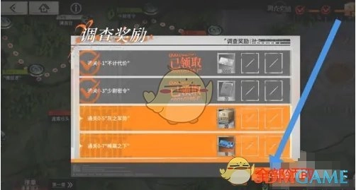 答案:前往章节调查页面,点击领取就能获得奖励。