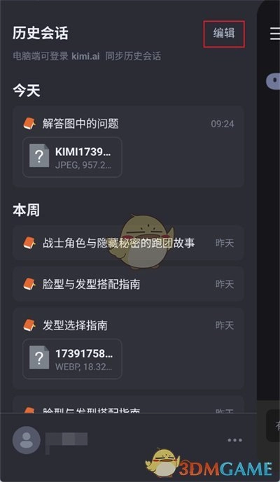 2、点击之后,左侧位置便会弹出历史会话,在此处能够看到大量历史记录,接着点击右上角的【编辑】选项。