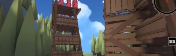 4、移步至第二层,留意避开木塔上敌人射击所造成的伤害。
