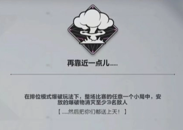 第三个隐藏成就名为“再靠近一点儿”:达成此成就要求玩家在排位玩法里,借助爆破物消灭三名及以上的敌人。这对玩家判断战局的能力是一种考验,玩家需摸透敌人的战斗路线,挑选合适的地点布置爆破物。第四个隐藏成就“第六感”:玩家要在排位玩法中,处于视线受限的状况下,完成击杀一名敌人的操作。这极为考验玩家听脚步的能力以及对地图的熟悉程度。