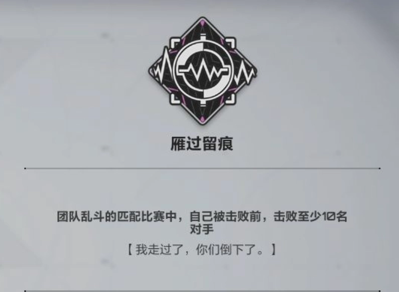 首个“雁过留痕”:于乱斗大赛里需成功战胜十名及以上敌人。若想达成此成就,玩家务必对自身实力充满信心。挑选自己拿手的枪械,再辅以冷静的应对与敏捷的反击,方能更顺利地获取该成就。第二个“暴走”:此成就颇具挑战难度。玩家要在乱斗比赛开启后的十五秒内,迅速打败五个敌人,这对玩家而言考验极大。小编提议大胆些,预先规划好战斗路线,径直冲进敌人扎堆之处,趁着敌人还没来得及做出反应,快速完成收割。