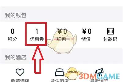 3、紧接着,在华住会“我的”页面,向下滑动屏幕,找到【优惠券】并点击。