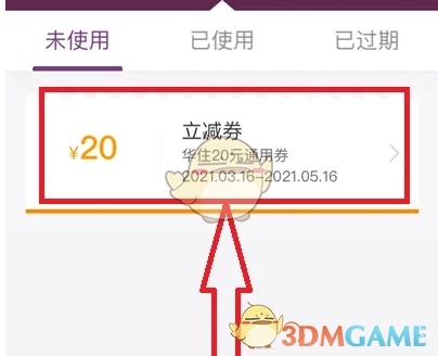 4、此时,我们便能看到自己领取到的优惠券,点击想要使用的那张优惠券。