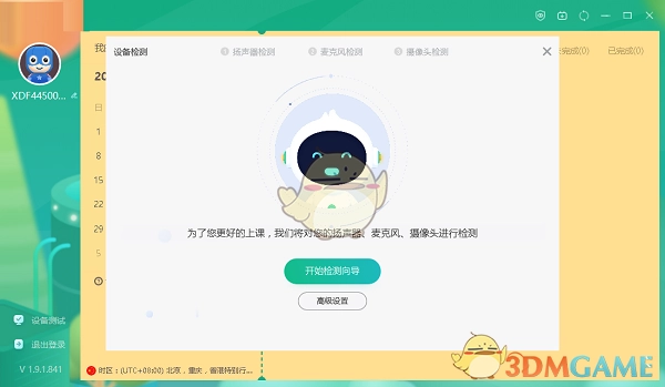 6、在此提示软件具备设备检测功能。为确保您能获得更佳的上课体验,我们会对您的扬声器、麦克风以及摄像头进行检测。