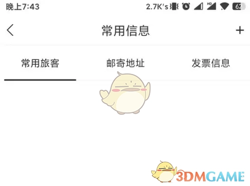 3、于常用信息界面里挑选常用旅客栏,接着点击界面右上角的“+”,从而进入常用旅客界面。