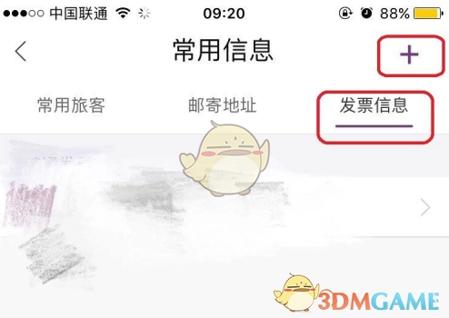 3、在“常用信息”板块中,点击发票信息,随后点击页面右上方的“+”号就可以了。