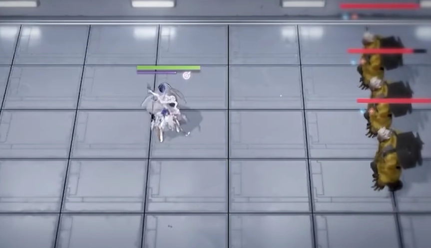 先来说说她的被动技能。小伙伴们能看到,场上出现的敌人,在面对格芮芙时,头顶都会出现一个蓝点。目前开发者尚未明确这个蓝点具体有什么作用,不过依据以往的技改情况推测,或许打破这个蓝点后,能在暴击率和暴击伤害方面得到提升。再讲讲格芮芙的普攻,她的普攻属于范围性伤害,施展后会对前方3×4范围内的敌人发动群体攻击,而且伤害颇为可观。