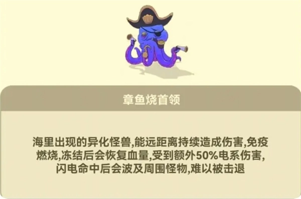 章鱼烧首领boss是在海里现身的异化怪兽,具备远距离持续输出伤害的能力,对燃烧效果免疫,被冻结后还会恢复血量,并且受到电系伤害时会额外承受50%的伤害。当闪电命中它后,还会对周围的怪物产生波及效果,同时它很难被击退。接下来,小编为大家带来《光合战队》章鱼烧首领的打法攻略,感兴趣的小伙伴们不妨一同来看看吧。
