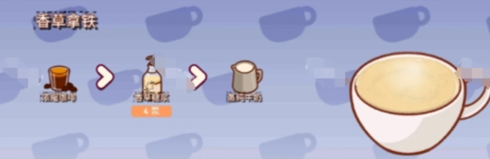 制作香草拿铁相对而言会稍微复杂一些。玩家首先要准备好材料,比如浓缩咖啡、香草糖浆和蒸纯牛奶。其做法是在咖啡杯中依次放入浓缩咖啡、香草糖浆以及打好的奶泡。