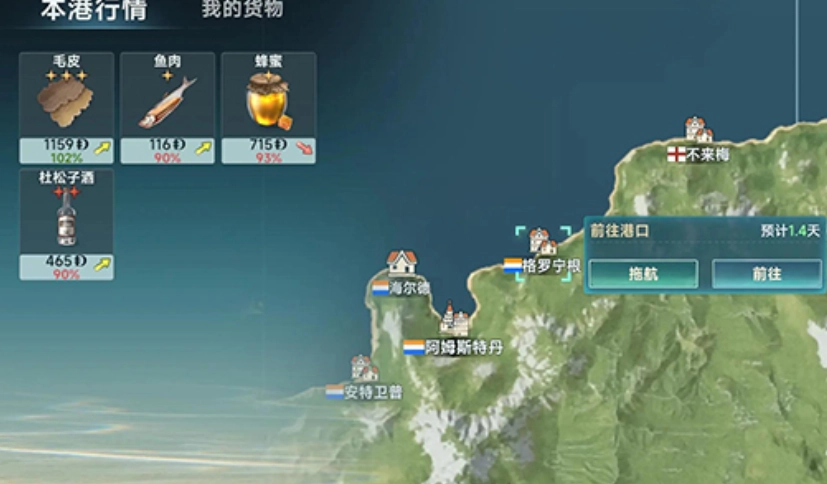玩家想要获得大量的金币,可以采用贸易跟交易的方式,游戏中涉及到物资的买卖,玩家需要关注物价,规划贸易航线,寻找特产差价大的港口,然后建立贸易路线。在游戏初期,玩家对各方面不是特别熟悉,此时可选择短途航线。到了后期玩家可尝试选择长途航线,玩家利用贸易跟交易,获得大量金币,不过要把握好流行商品,也需要利用功能优化交易等等。