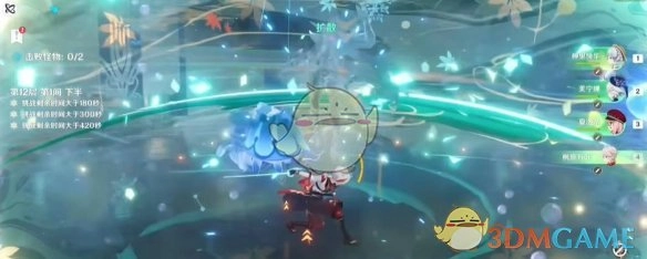 4、第二只怪出来,绫华染冰,万叶充能然后开大染冰,再切绫华破盾。
