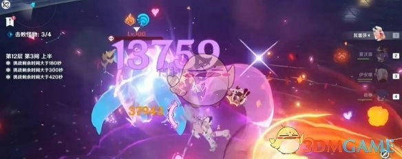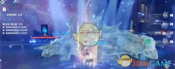 6、接下来,瓦雷莎持续进行EAAEAAQ的循环操作。要是怪物的血量所剩不多,就把香菱的大招留到下一间使用;或者适当控制一下战斗节奏,确保下一间能够释放香菱的大招。