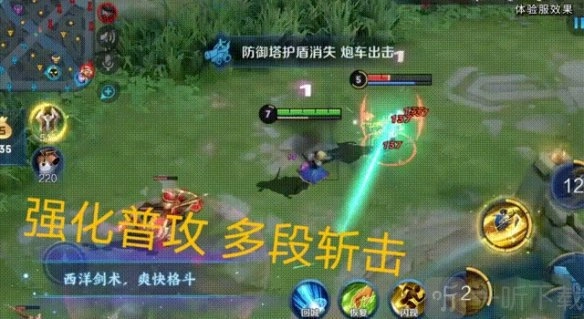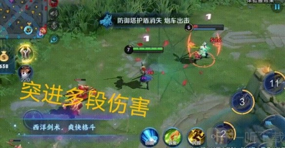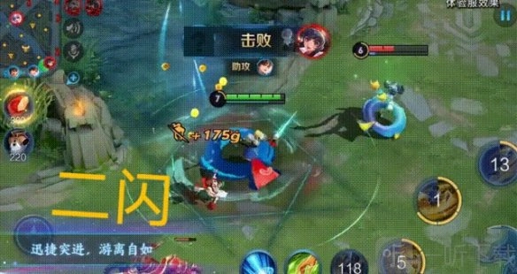 如图所示,夏洛特施展二技能,快速位移了一段距离,在此过程中对敌方扁鹊造成多次伤害,自身的buff栏也叠加了一层被动,这就是二技能的效果。此技能伤害不算高,但具备位移效果,而且技能冷却时间(CD)很短,预计后期能频繁使用,从而实现战场的灵活切入与切出。