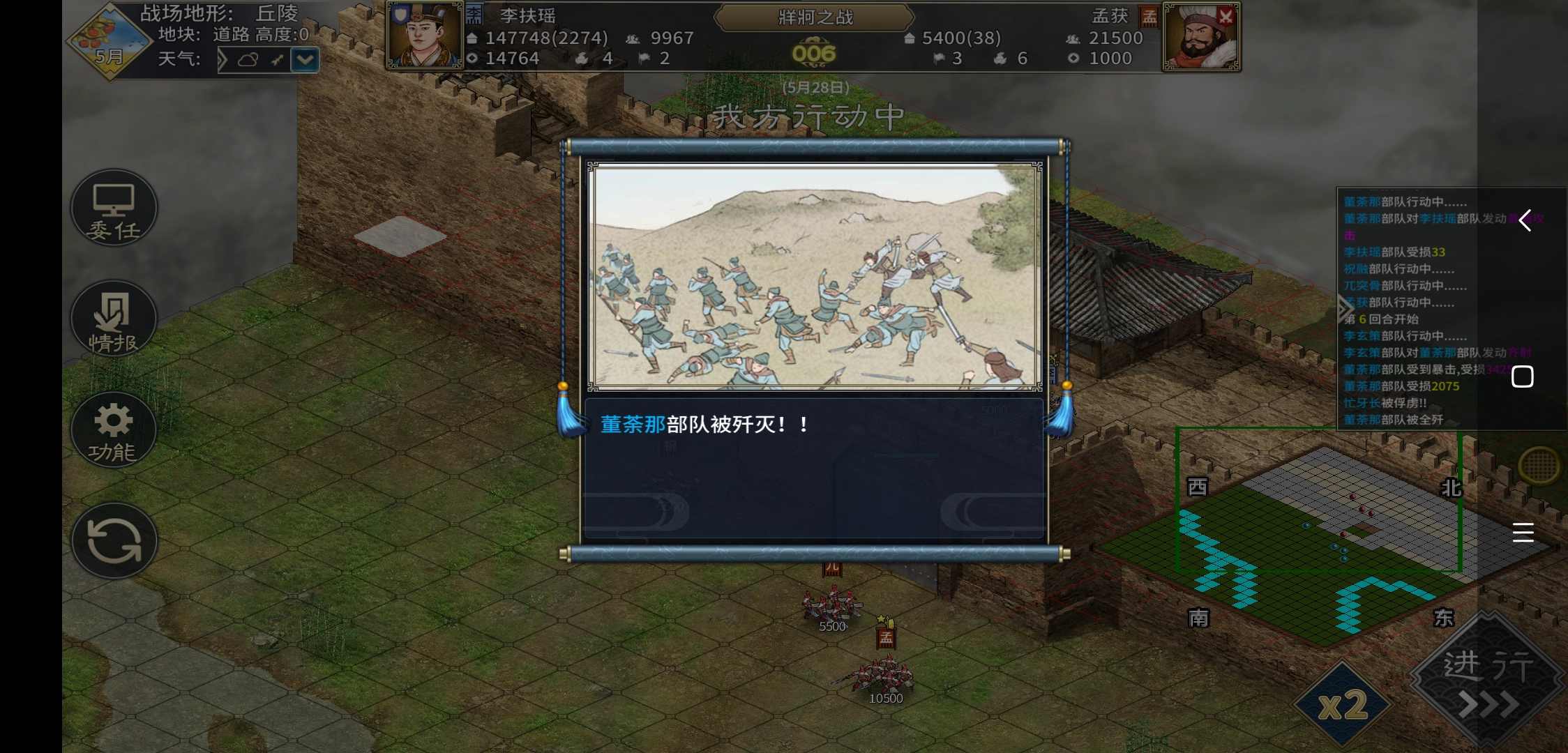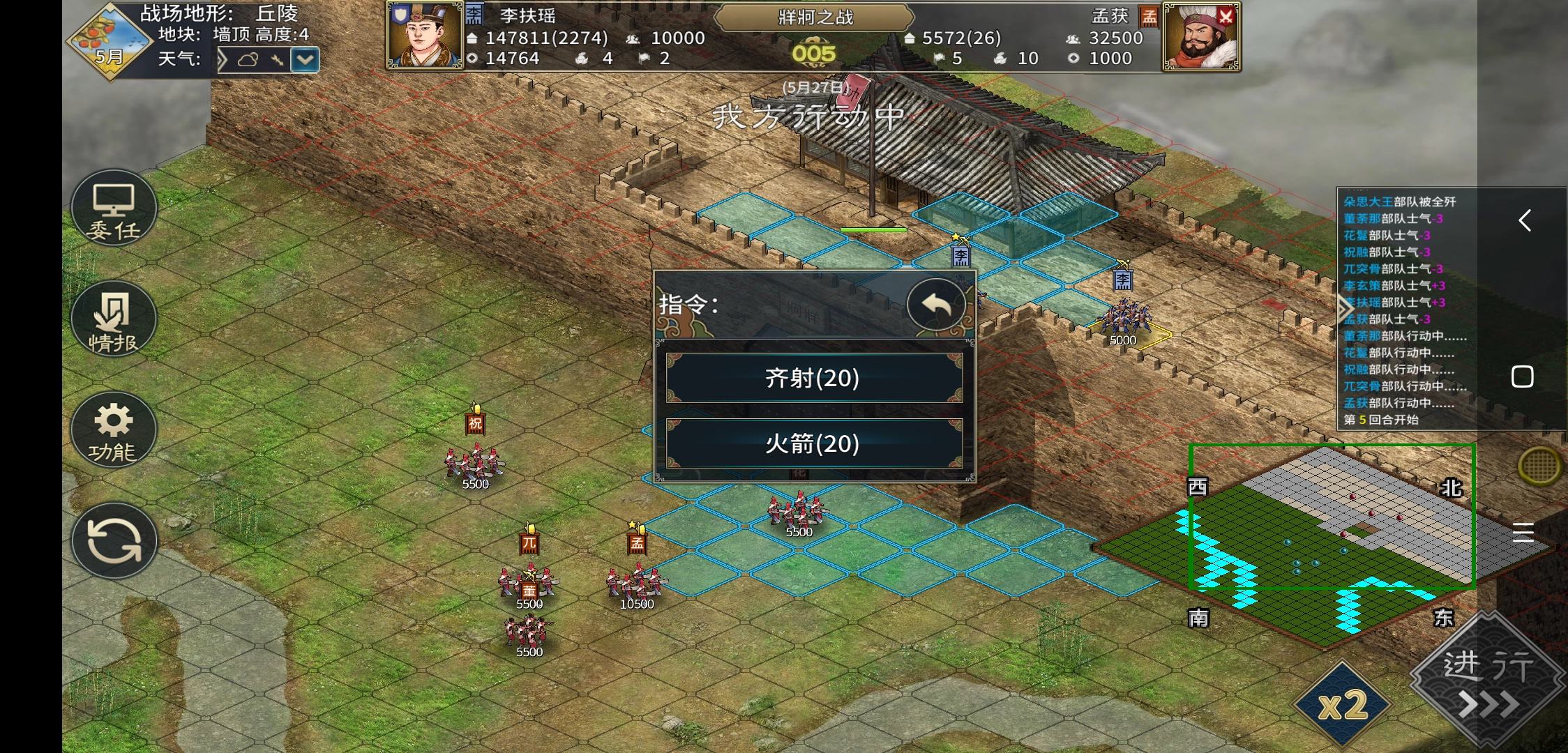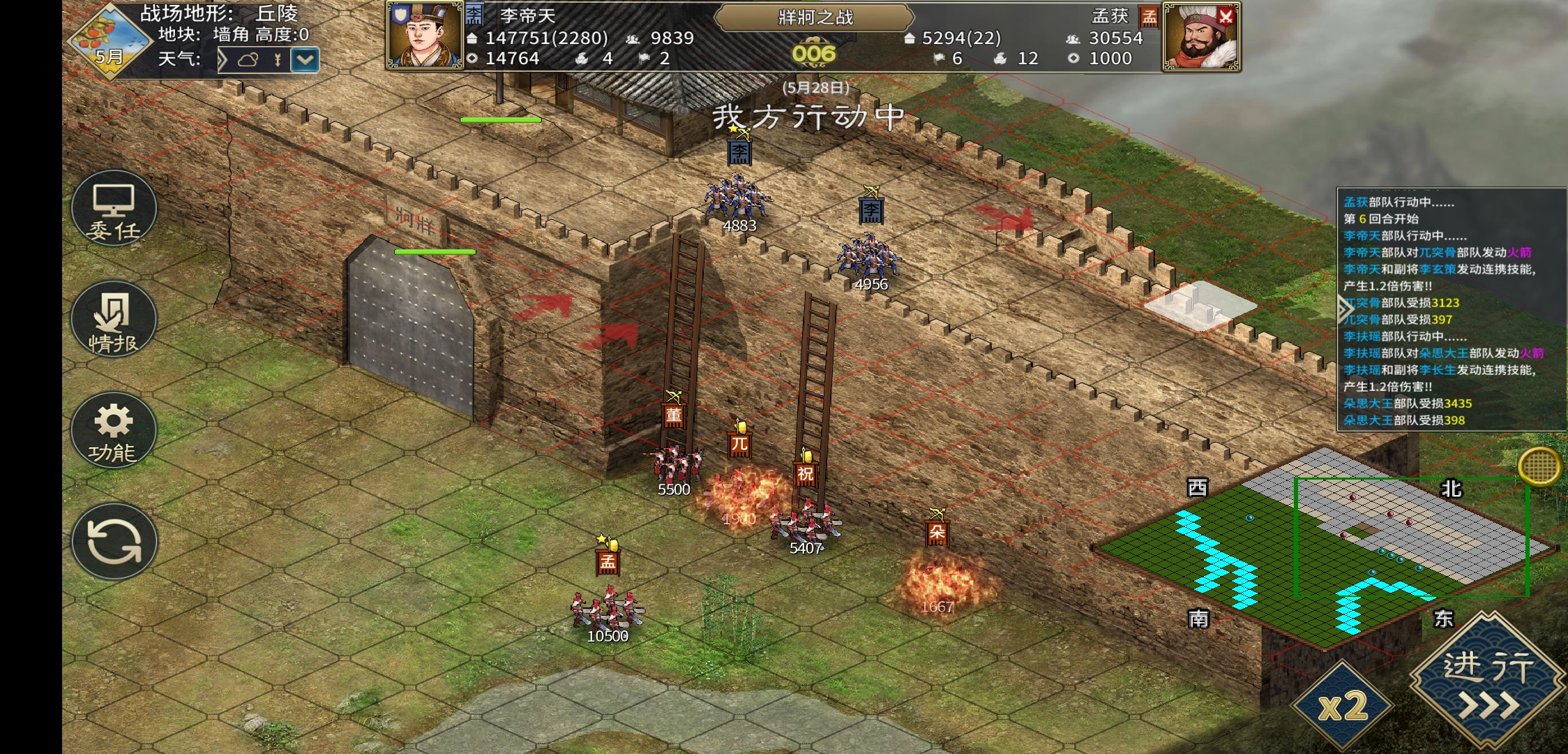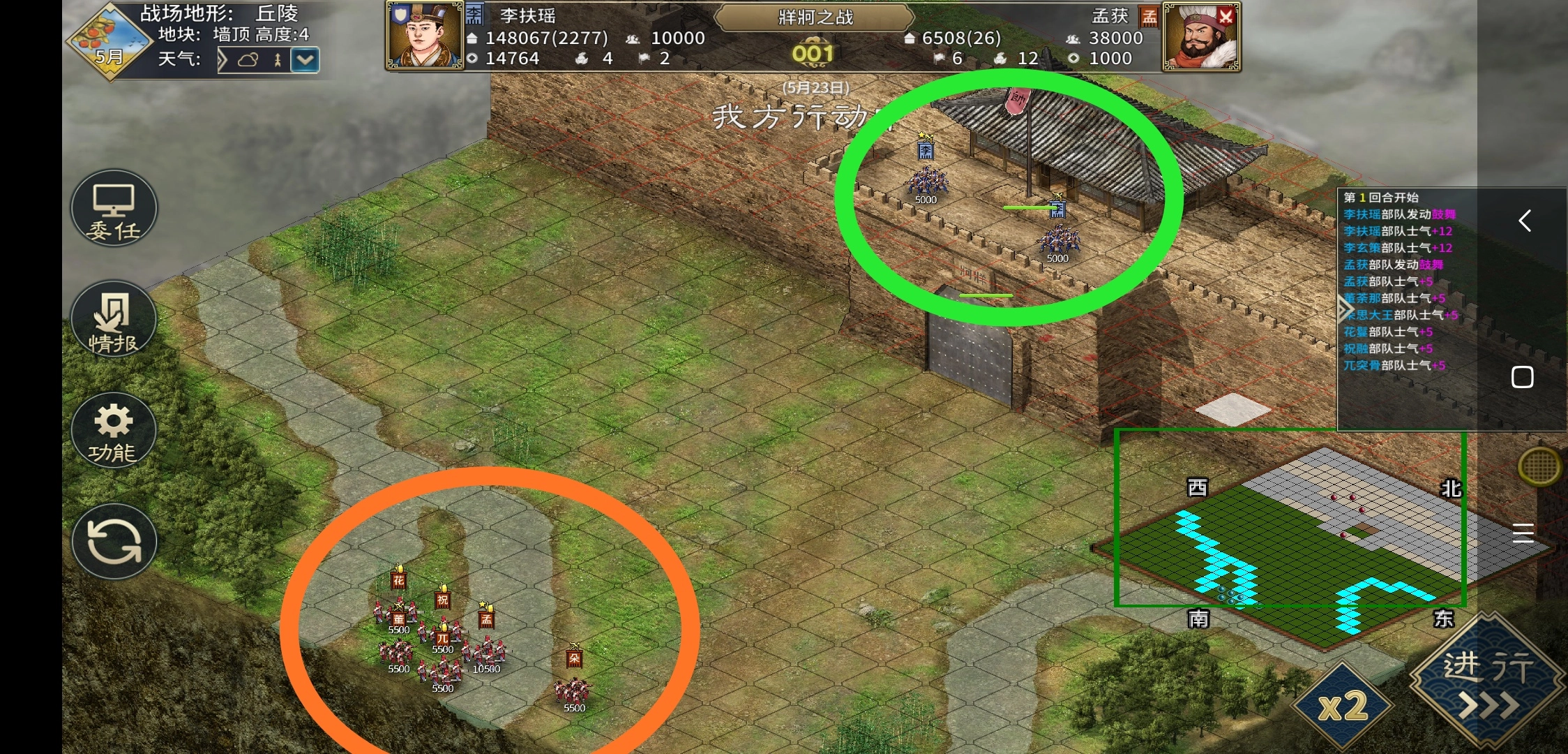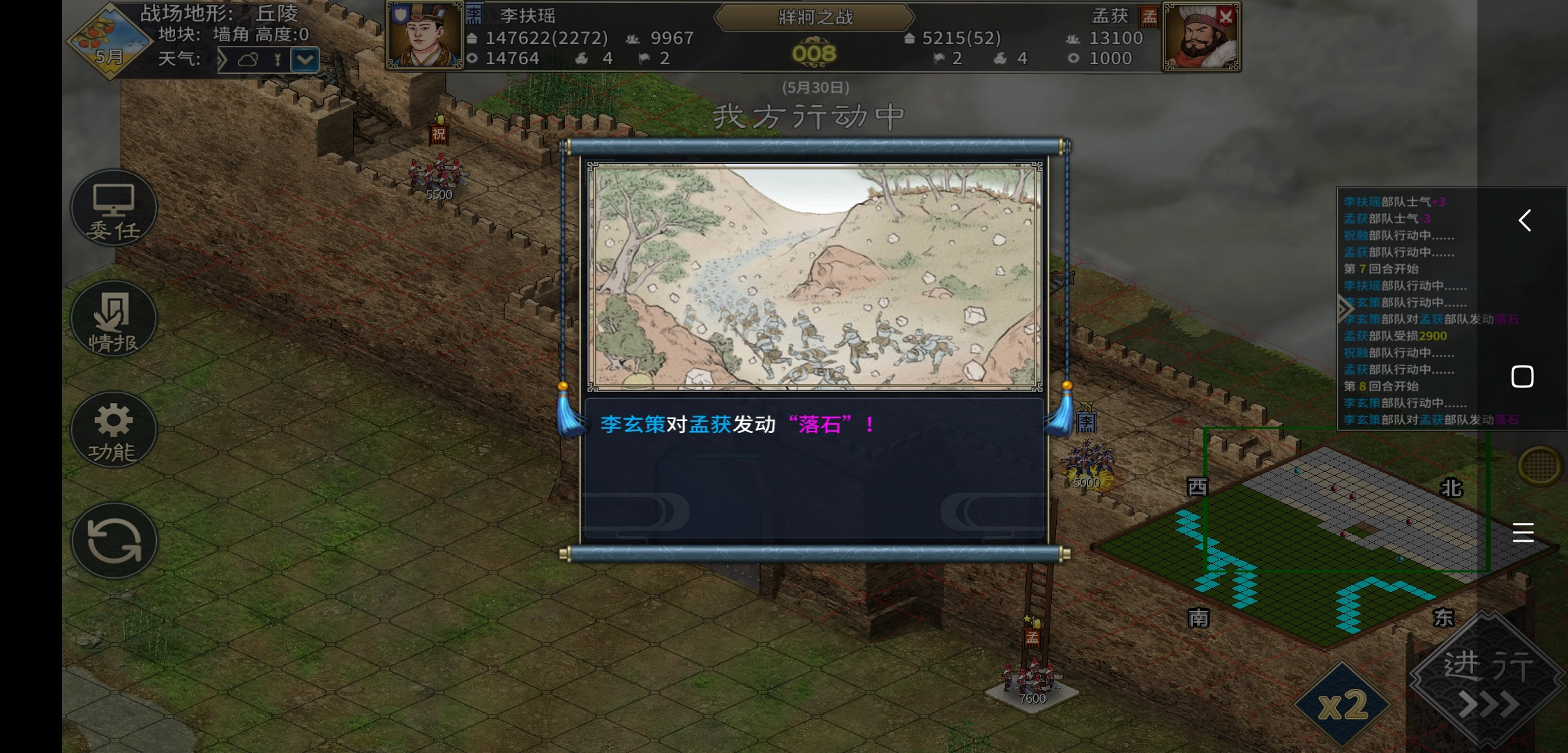 经过几轮的战斗,敌人被干掉了不少,但数量仍然高于我方,现在就可以讲到另外两种非常实用的计略,那就是落石和火计。
