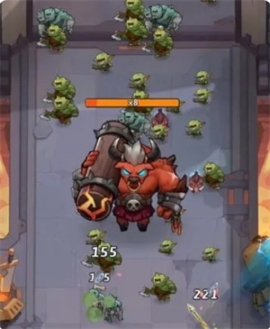 肉盾怪物在死亡时,会分裂成为两只绿皮。它针对射手英雄具备30%的伤害抗性,会和强壮哥布林一同为其他怪物的前进提供掩护。